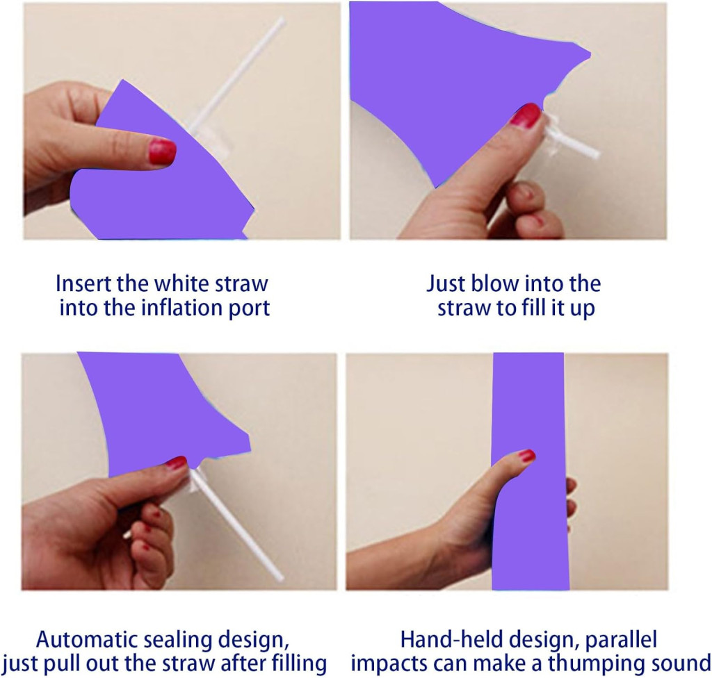 Bastoanele Thunder Sticks sunt sigure și ușor de utilizat pentru toate vârstele. Umflarea este un proces simplu - trebuie doar să introduci paiul inclus în supapă și să umfli bastonul. Supapa se închide automat, astfel încât aerul nu se scurge în timpul utilizării.