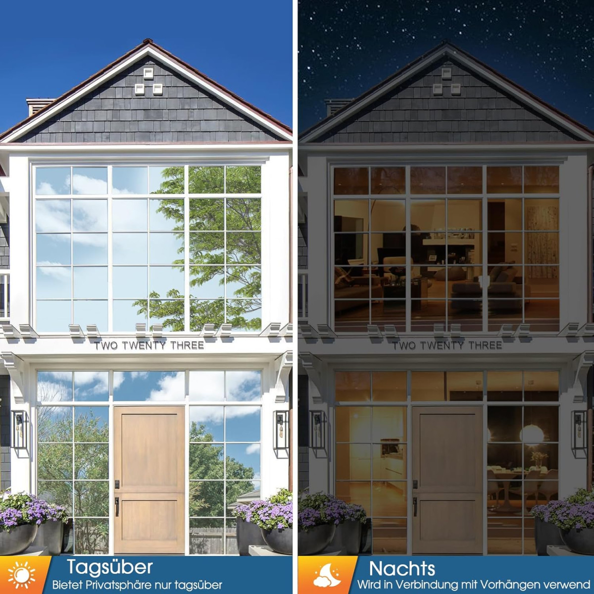 - Intimitate pe timpul zilei: Suprafața cu efect de oglindă oferă discreție totală din exterior, oferind în același timp o vedere clară din interior. Pe timp de noapte, efectul se inversează.