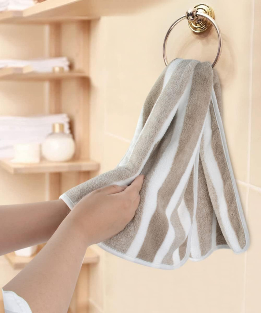 KinHwa este în fruntea industriei prosoapelor de 10 ani, iar fiecare produs al nostru este supus unui control strict al calității, de la materii prime până la produsul final. Designul elegant în dungi se potrivește perfect cu orice decor modern de baie, în timp ce bucla practică de agățat facilitează depozitarea și uscarea.