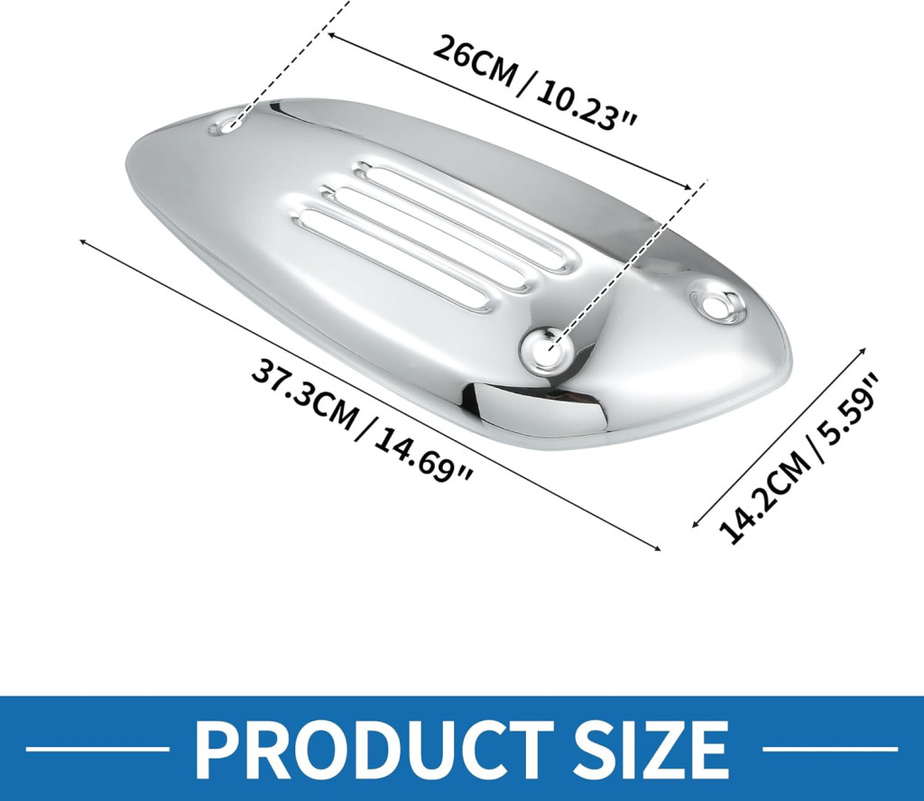 Pentru o potrivire adecvată, vă recomandăm să măsurați diametrul țevii de eșapament a scuterului dvs. înainte de a cumpăra. Dimensiunile exacte ale produsului sunt: 37,3x14,2 cm, distanța dintre găurile de montare este de 26 cm. Este important de reținut că acesta nu este un produs OEM, ci un accesoriu de înaltă calitate care înlocuiește perfect piesa originală.