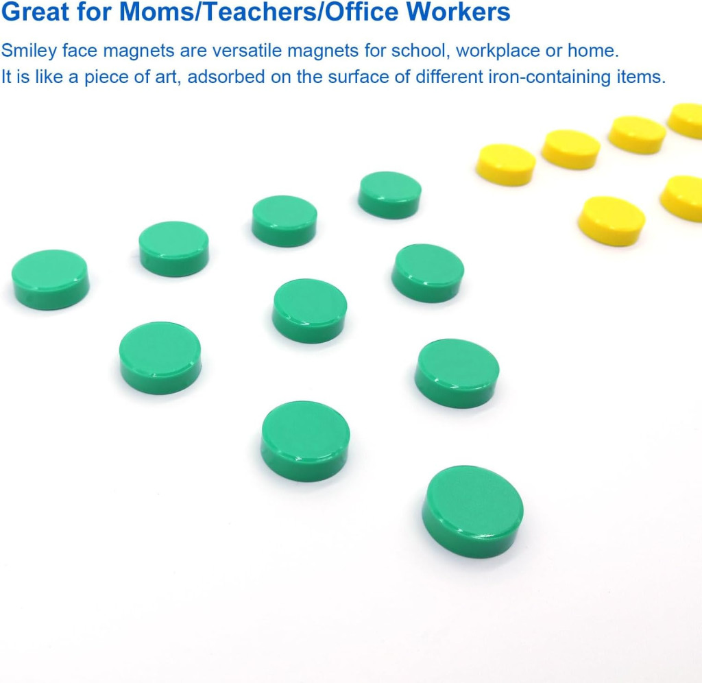Wugauwor Set de magneți pentru tablă, 20 buc, magneți rotunzi pentru frigider, galbeni și verzi, birou, școală, tablă magnetică, model zâmbitor