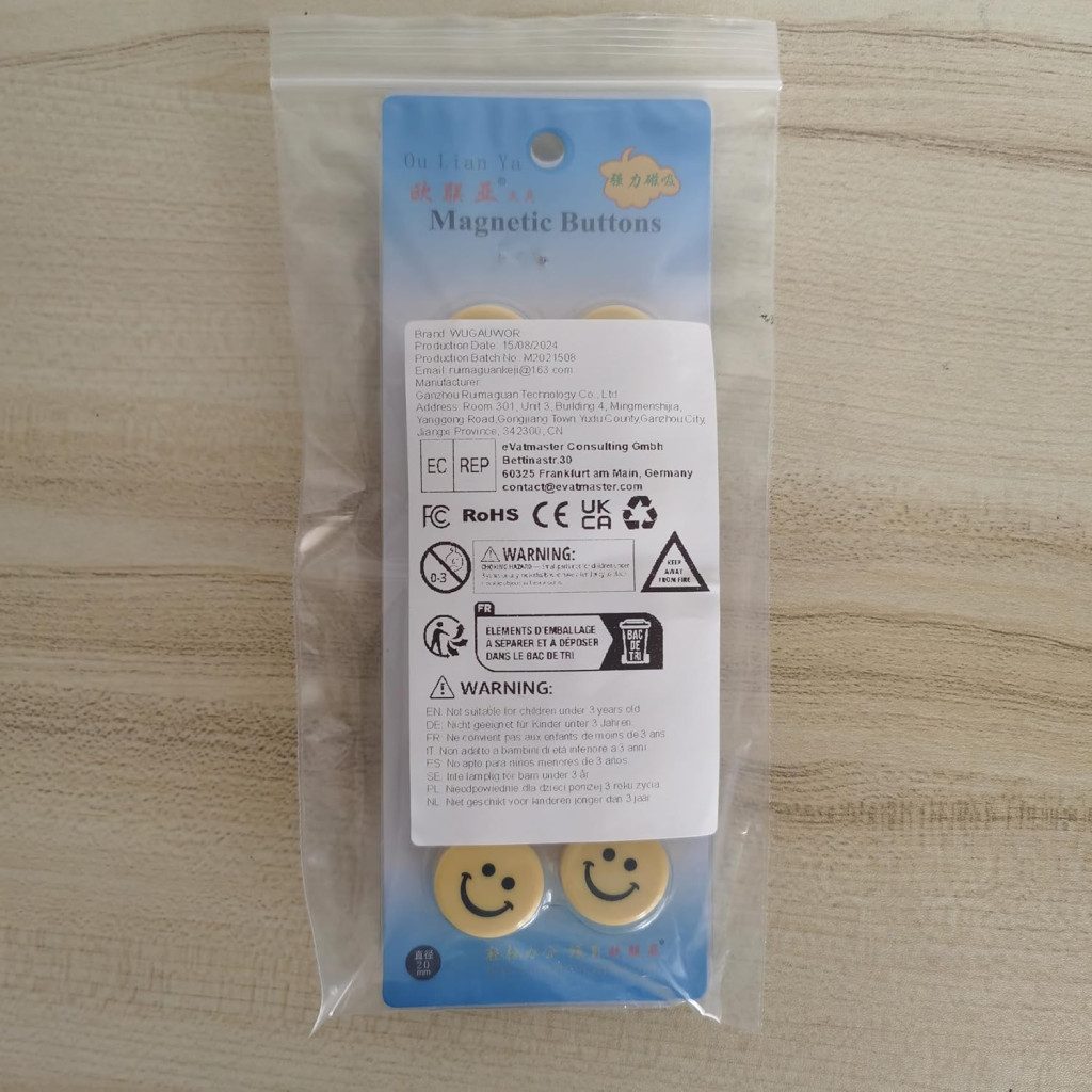 Cu un diametru de 20 mm și o grosime de 8 mm, magneții au dimensiunea ideală pentru a ține bine hârtii, notițe și alte obiecte ușoare, fără a ocupa prea mult spațiu. Designul zâmbitor este deosebit de popular printre profesori, părinți și angajații de birou care doresc să-și însuflețească mediul de lucru.