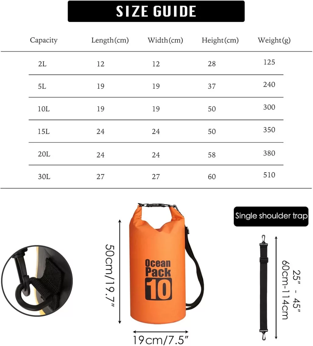 Geanta uscată MORAINJAY este disponibilă în 7 dimensiuni diferite, pentru a se potrivi perfect nevoilor tale:
