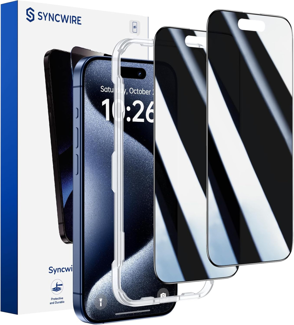 Folie de protecție ecran din sticlă temperată SYNCWIRE pentru iPhone 15 Pro Max 6.7 Inch - Anti-Spy 28°