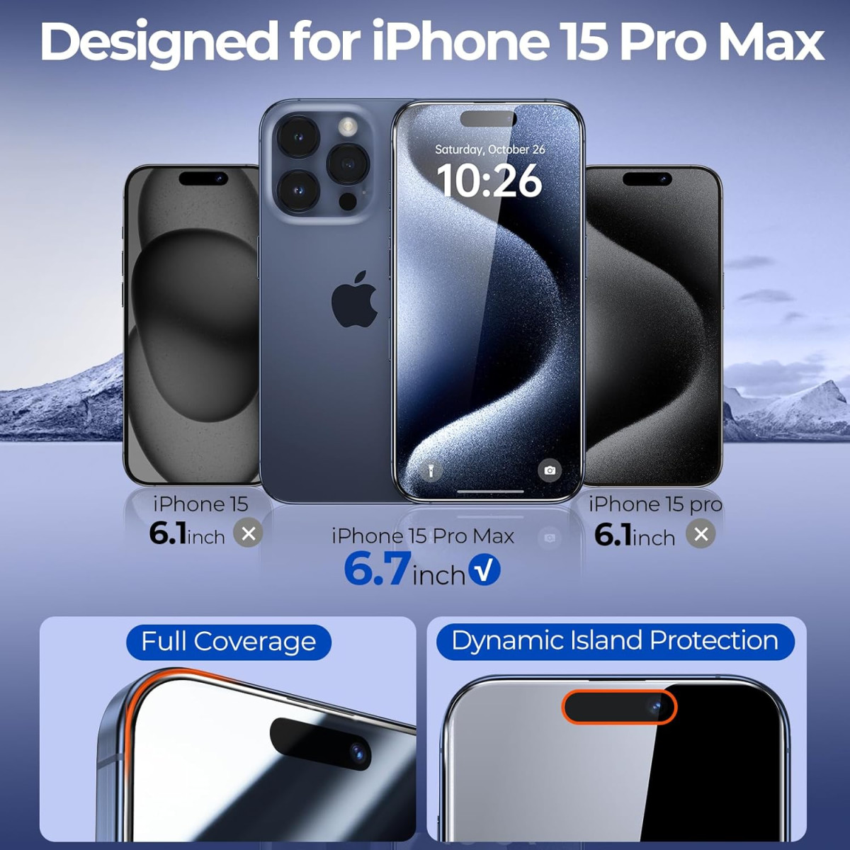 Această folie de protecție este special concepută pentru modelul iPhone 15 Pro Max 6.7 inch (2023). Designul complet al suprafeței din sticlă temperată asigură o potrivire perfectă, fără goluri. Este compatibilă cu majoritatea huselor de telefon și nu afectează aspectul elegant al dispozitivului.
