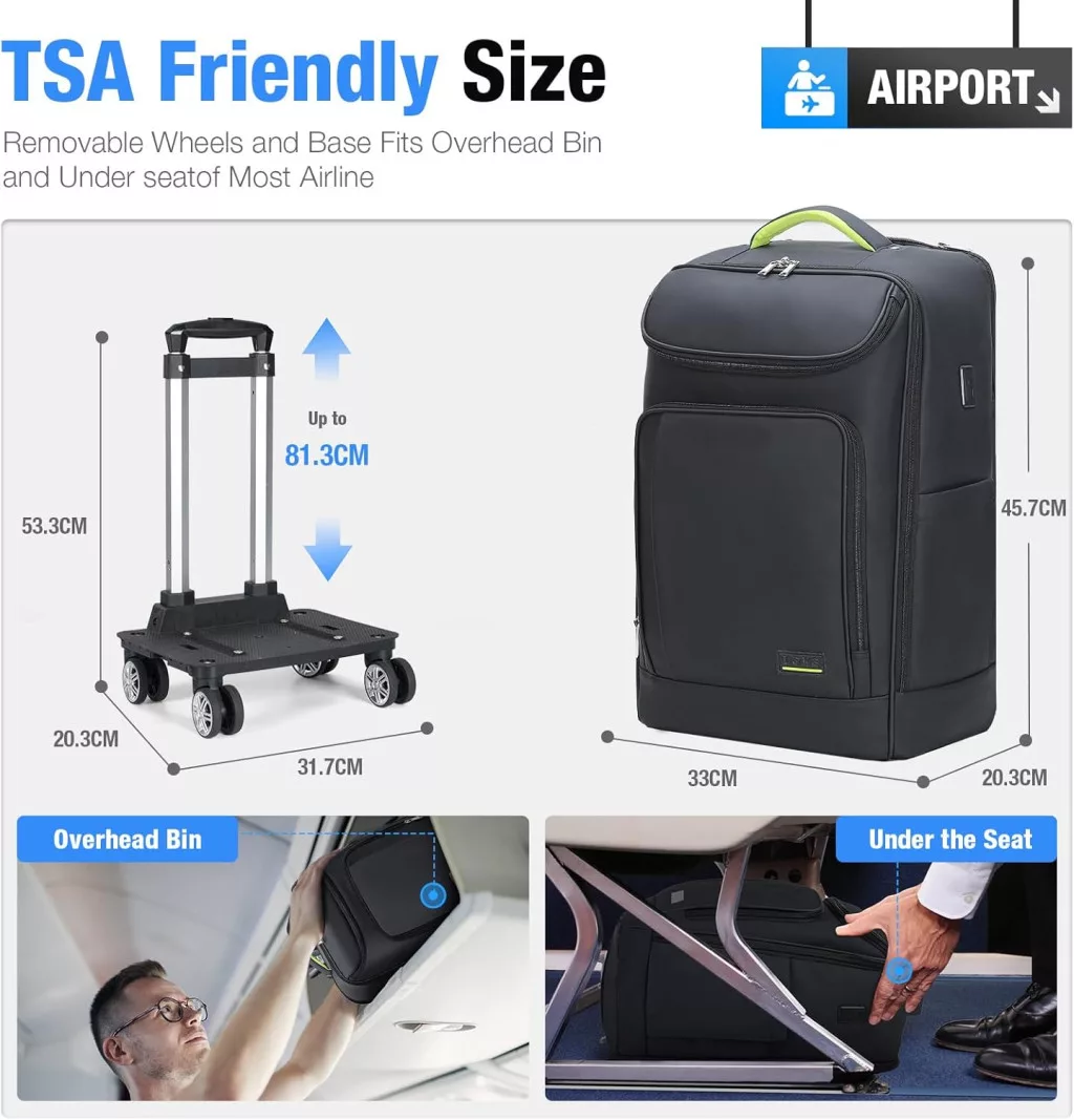 • Dimensiune aprobată TSA: 34 x 23 x 49 cm - respectă cerințele majorității companiilor aeriene pentru bagajul de mână