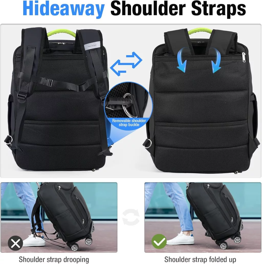 Rucsacul trolley Lekespring este alegerea perfectă pentru călătorul modern. Această soluție inovatoare 2-în-1 combină confortul unui rucsac cu utilitatea unui troler. Este conceput special pentru cei care călătoresc frecvent și caută o soluție care să fie atât funcțională, cât și elegantă. Materialul premium din piele PU garantează durabilitatea și impermeabilitatea, în timp ce roțile rotative la 360° asigură o mișcare lină pe orice suprafață.
