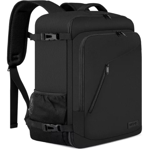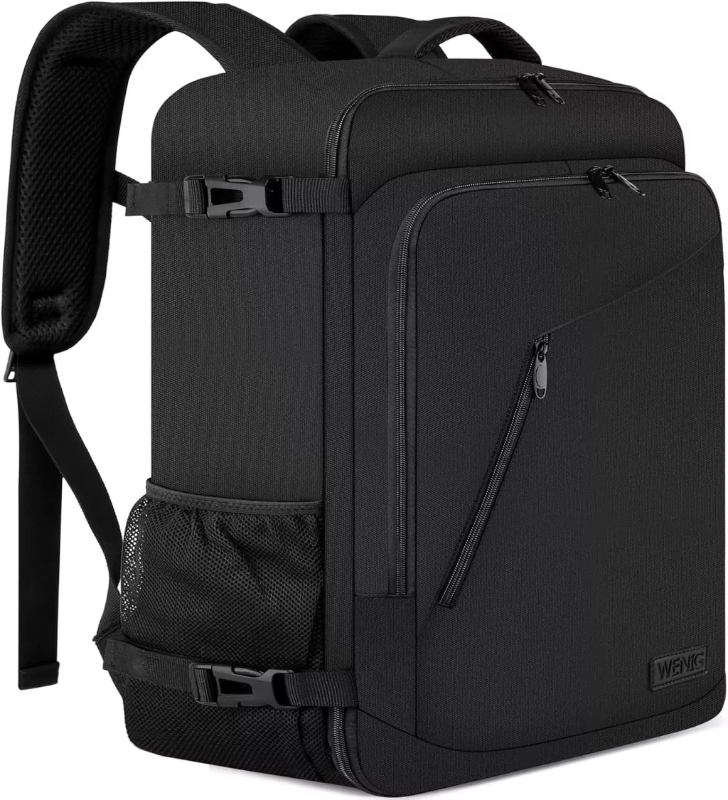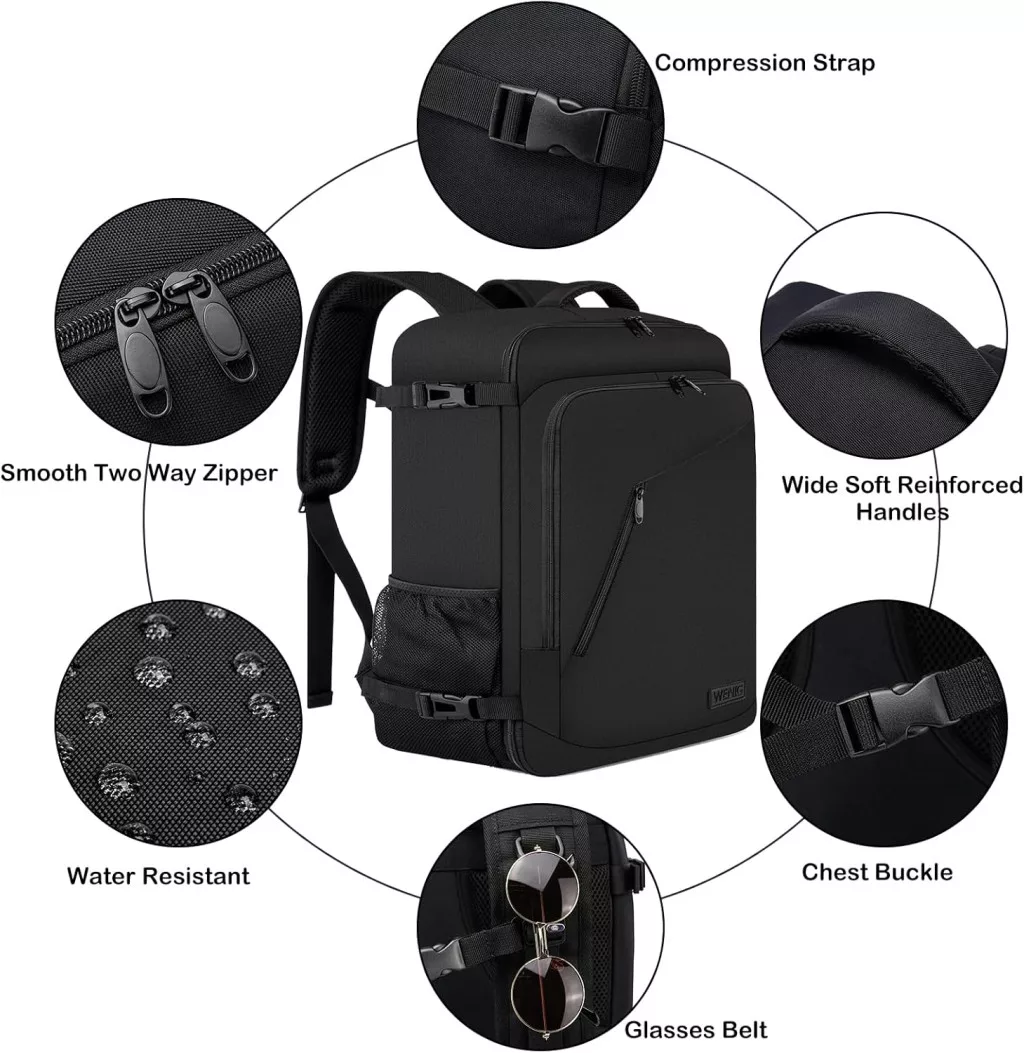 Rucsac de cabină WENIG cu port USB de încărcare - Geantă laptop care încape sub scaunul avionului, pentru bărbați și femei, Negru