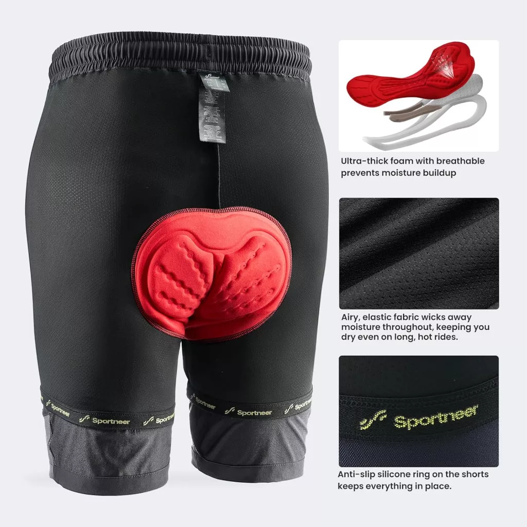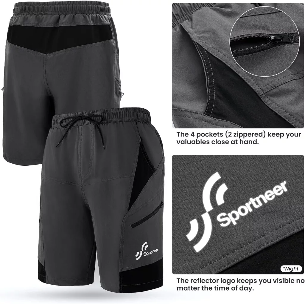 Pantaloni scurți de ciclism pentru bărbați Sportneer, cu căptușeală 3D, pentru MTB, ciclism montan, sporturi în aer liber
