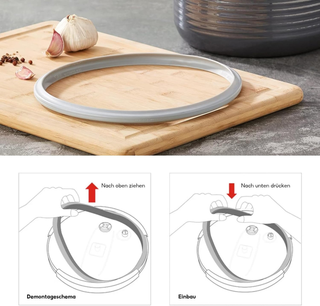 - Gyors csere: Egyszerűen és gyorsan eltávolítható és felszerelhető a nyomásfőző fedőről