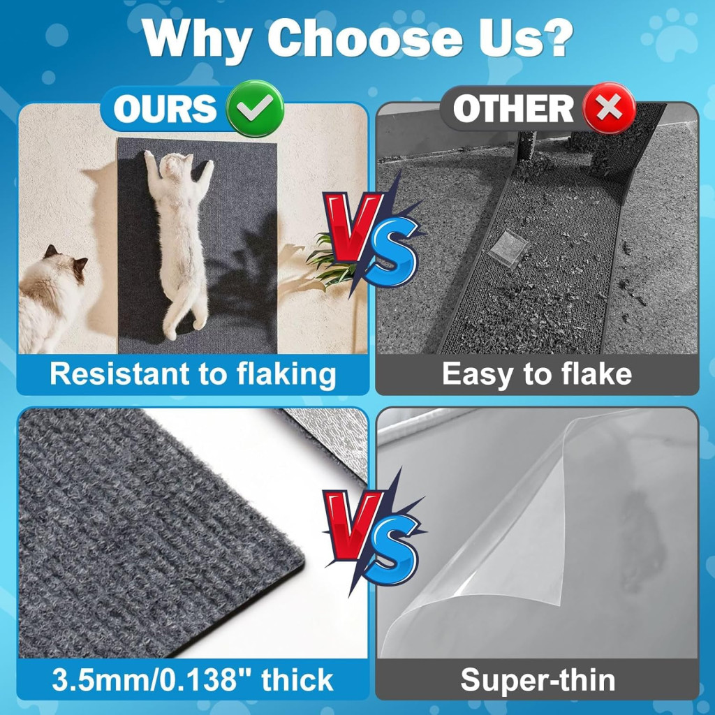 A macskák természetes kaparási ösztöne elengedhetetlen az egészséges karmok fenntartásához és a stresszcsökkentéshez. Ez a kaparómatt lehetővé teszi, hogy macskája kielégítse ezt az igényt, miközben a bútorai biztonságban maradnak. Az önragasztós technológia azt jelenti, hogy nem kell aggódnia a csavarokról vagy a szögekről, amelyek veszélyesek lehetnek macskájára.