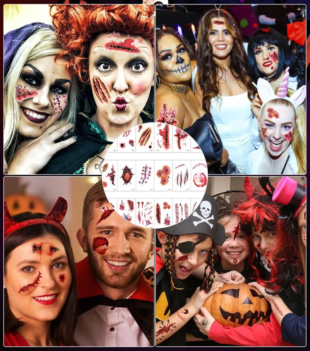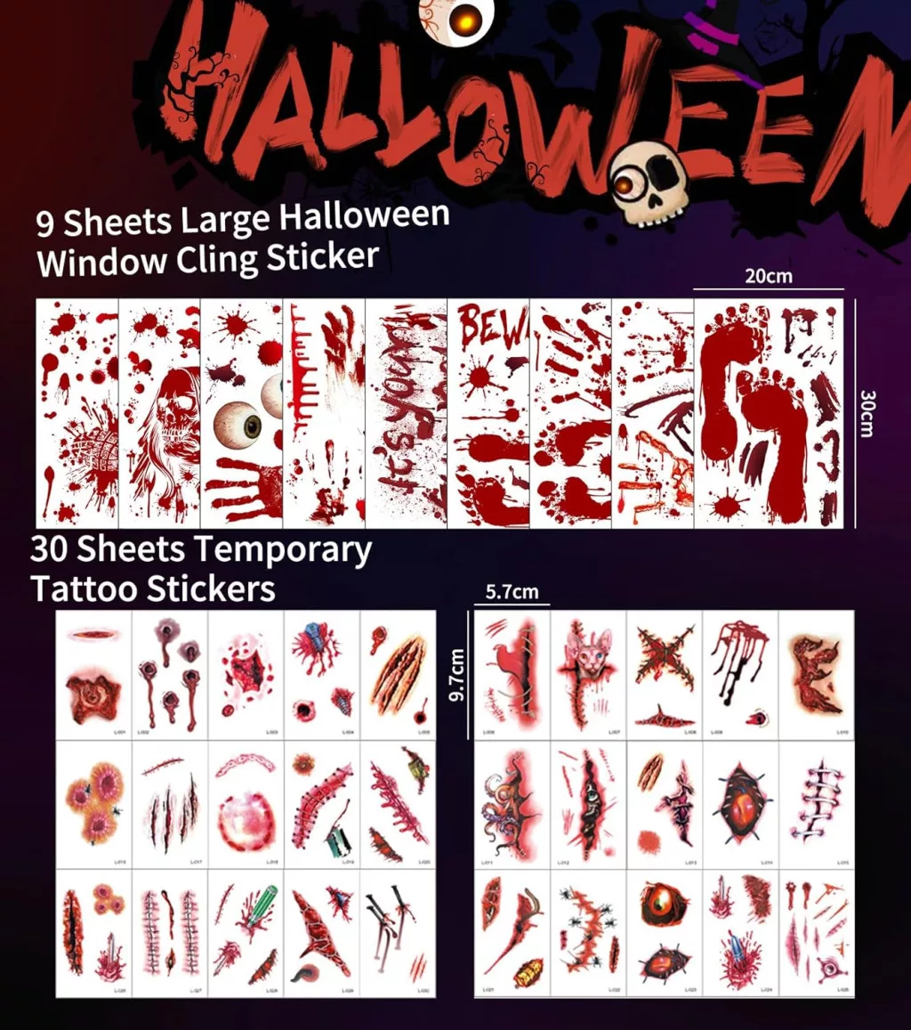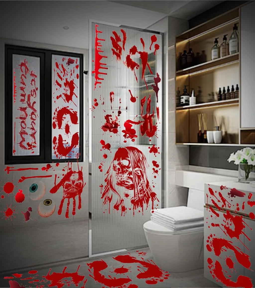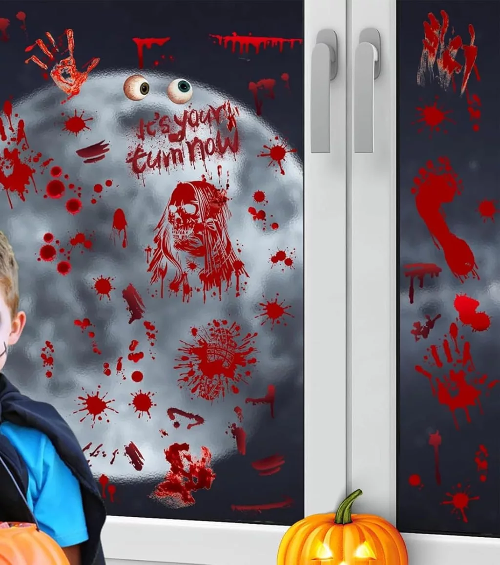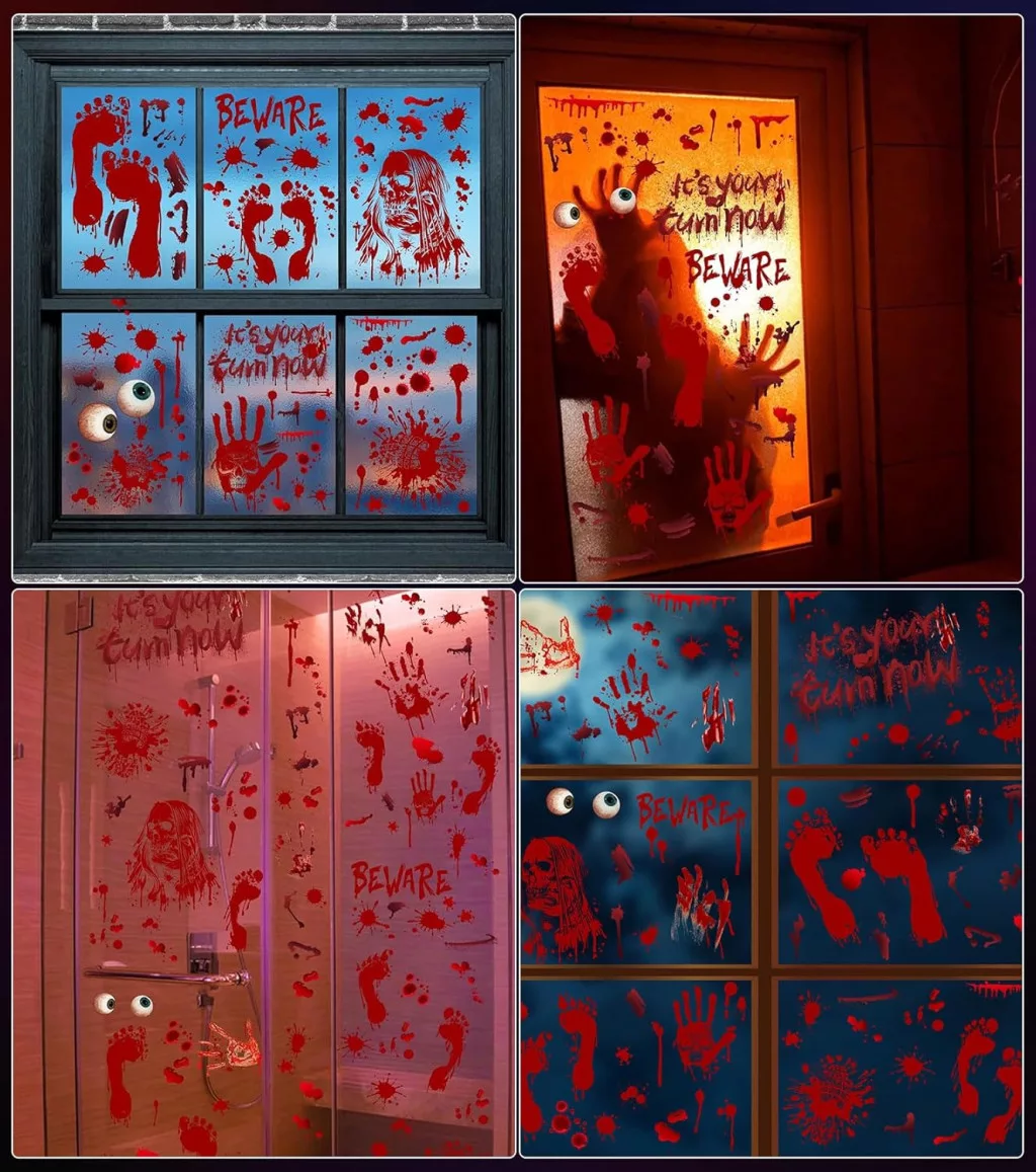 Set de 174 de autocolante de Halloween pentru ferestre SUVEK, decor cu pete de sânge și amprente de mâini de zombi.