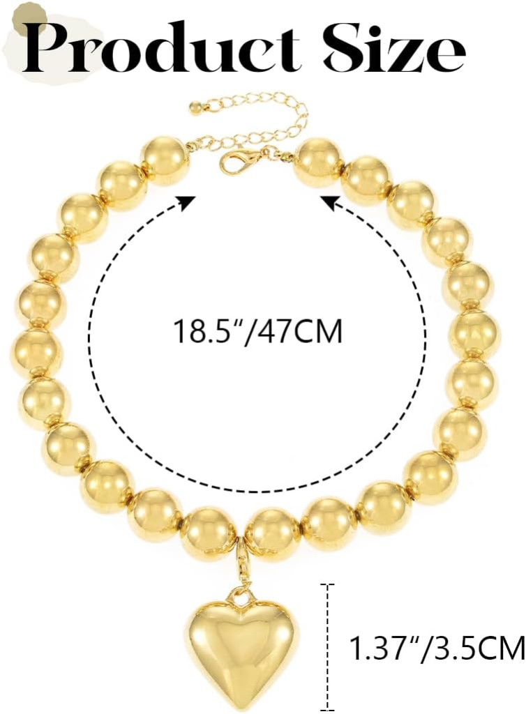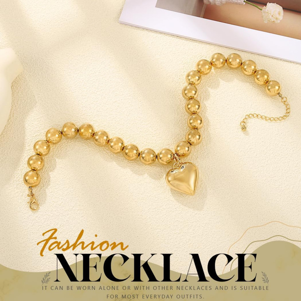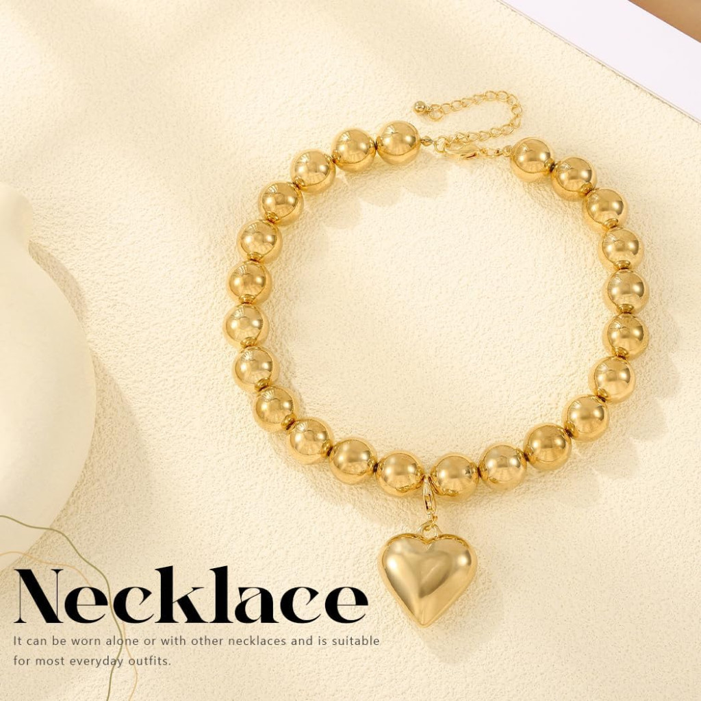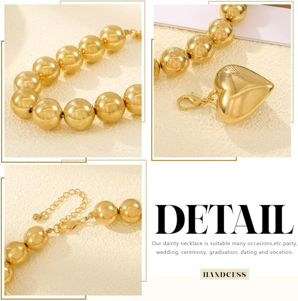 Handcess Colier cu Mărgele și Pandantiv Inimă Aurie, Bijuterie Statement pentru Femei