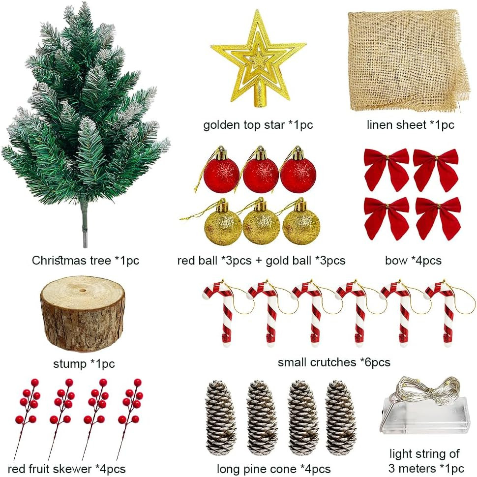 Brad de Crăciun pre-iluminat de 60 cm cu lumini LED - Set complet de decorare Set complet de decorare pentru brad de Crăciun compact