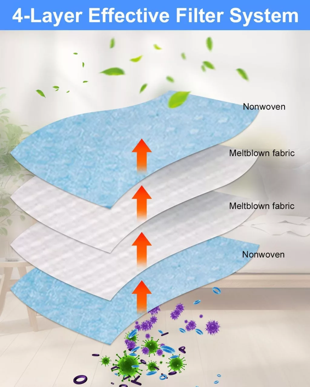 - Tartós anyag: 2 réteg finom szál + 2 réteg nem szőtt szövet kombinációja