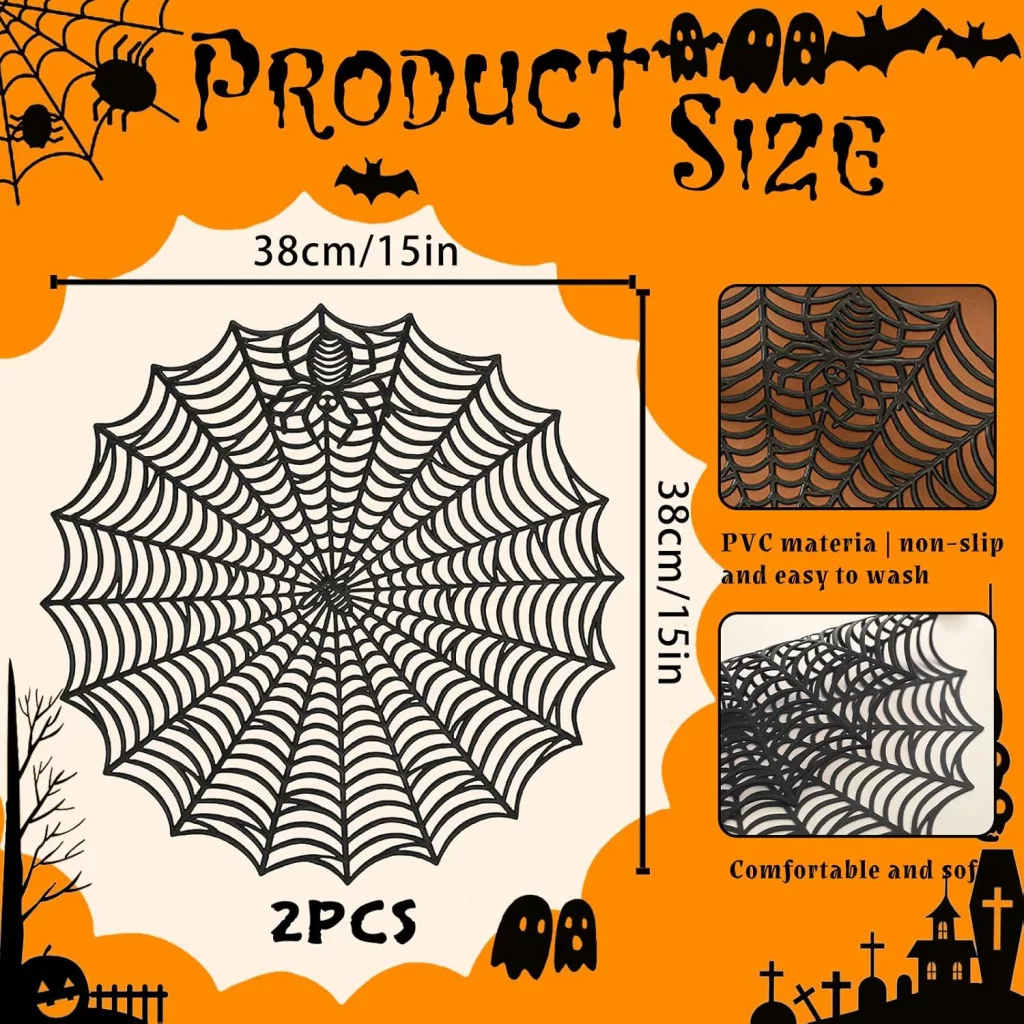 Set Fețe de Masă Halloween Model Pânză de Păianjen - 2 buc, 38 cm, PVC Rezistent la Căldură