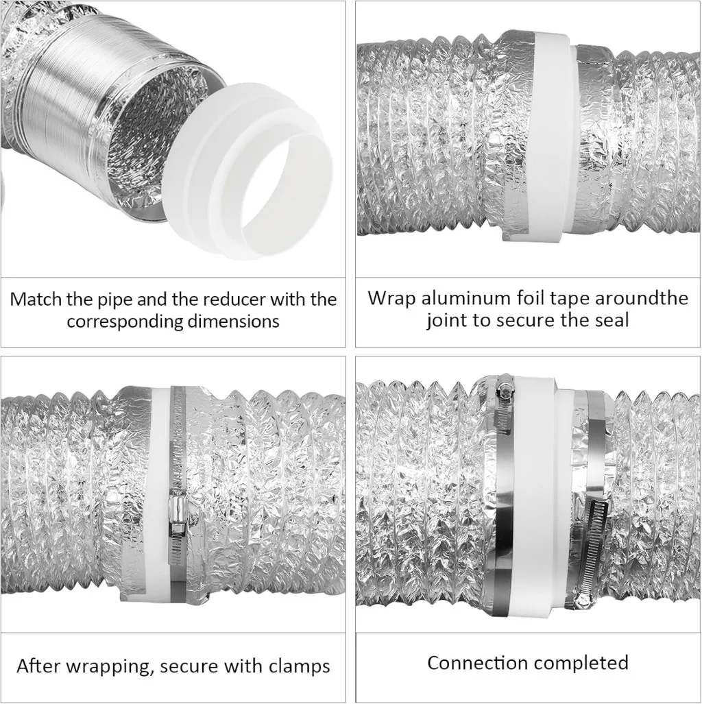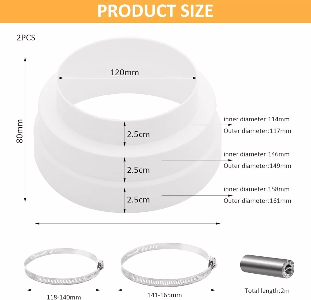 DAWRIS 2 buc Reducție Conectoare 120-160mm cu Clemă Inox pentru Ventilație