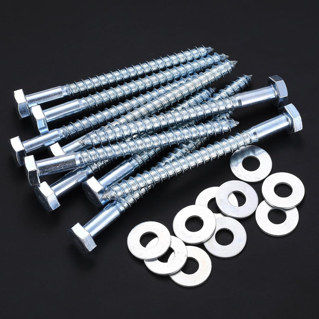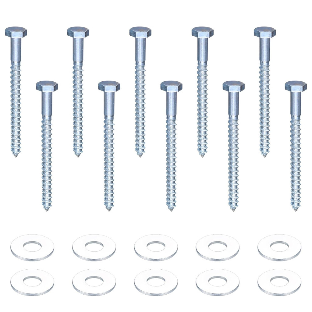 Șuruburi hexagonale pentru lemn M10 x 120 mm cu șaibe - Set de 10 bucăți | Hmkesoteric Șuruburi hexagonale pentru lemn M10 x 120 mm cu șaibe galvanizate