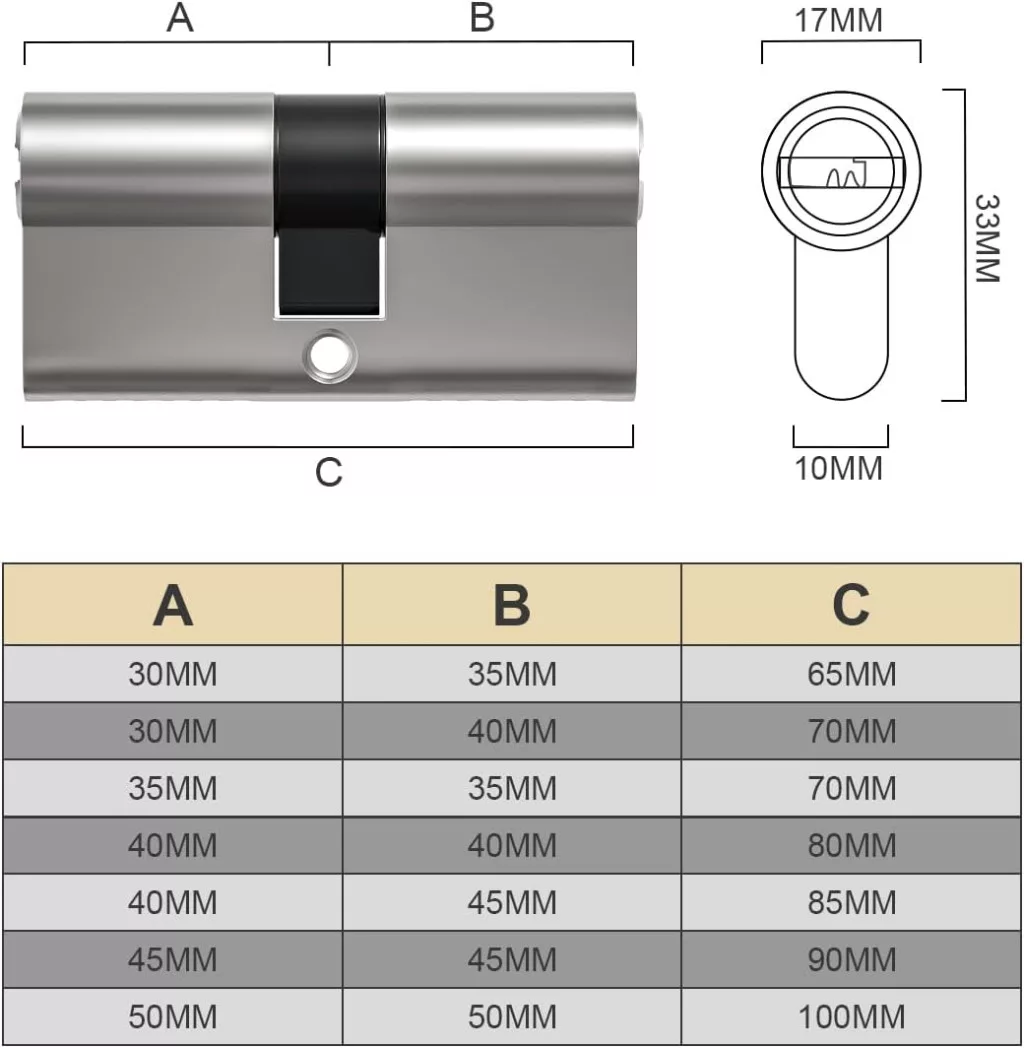 Încuietoarea asigură o compatibilitate largă, care permite instalarea pe aproape orice ușă. Dimensiunea de 70mm (variația 30/40) este cea mai răspândită dimensiune de cilindru european, care respectă standardele europene. Produsul include toate componentele necesare pentru o instalare rapidă și ușoară, inclusiv șuruburi și chei.