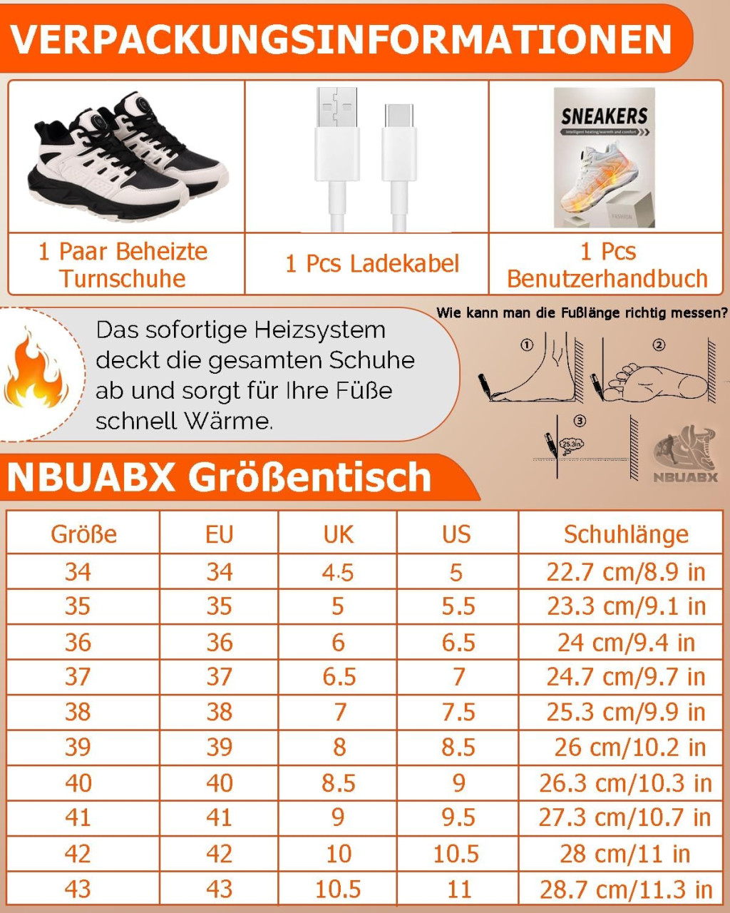 Încălțămintea încălzită NBUABX are un design unisex, astfel încât se potrivește perfect atât picioarelor bărbaților, cât și ale femeilor. Pantoful are șireturi reglabile în jurul gleznei, care permit reglarea strângerii pentru o potrivire perfectă. Pantoful este disponibil în diferite mărimi, astfel încât toată lumea să poată găsi măsura potrivită.