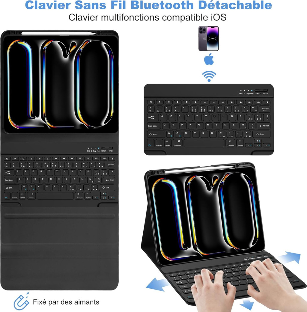 GAOJIE Husă cu tastatură Bluetooth pentru iPad Pro 13 inch (M4) 2024 - AZERTY Franceză