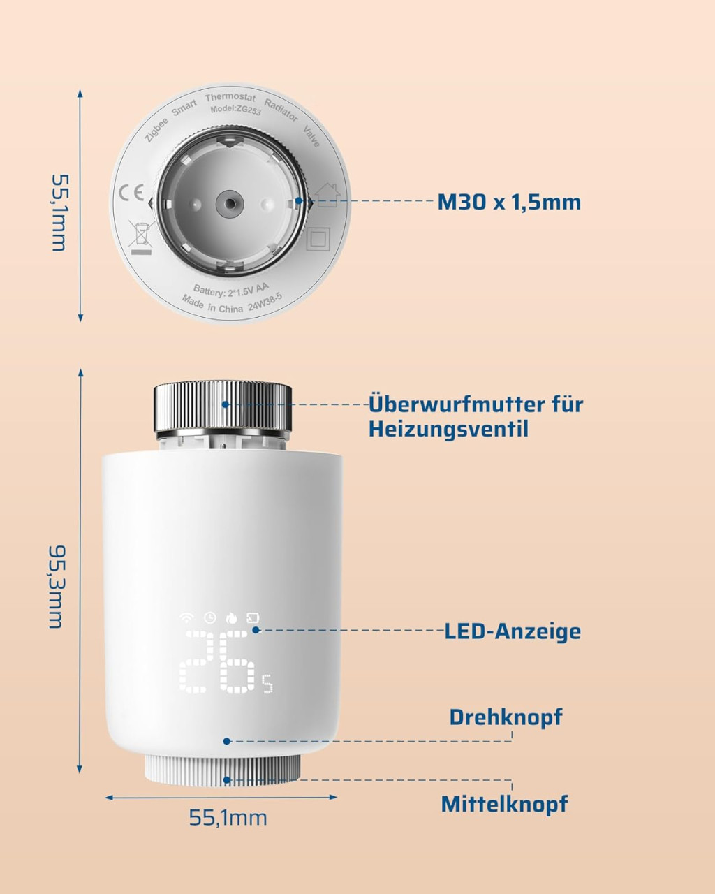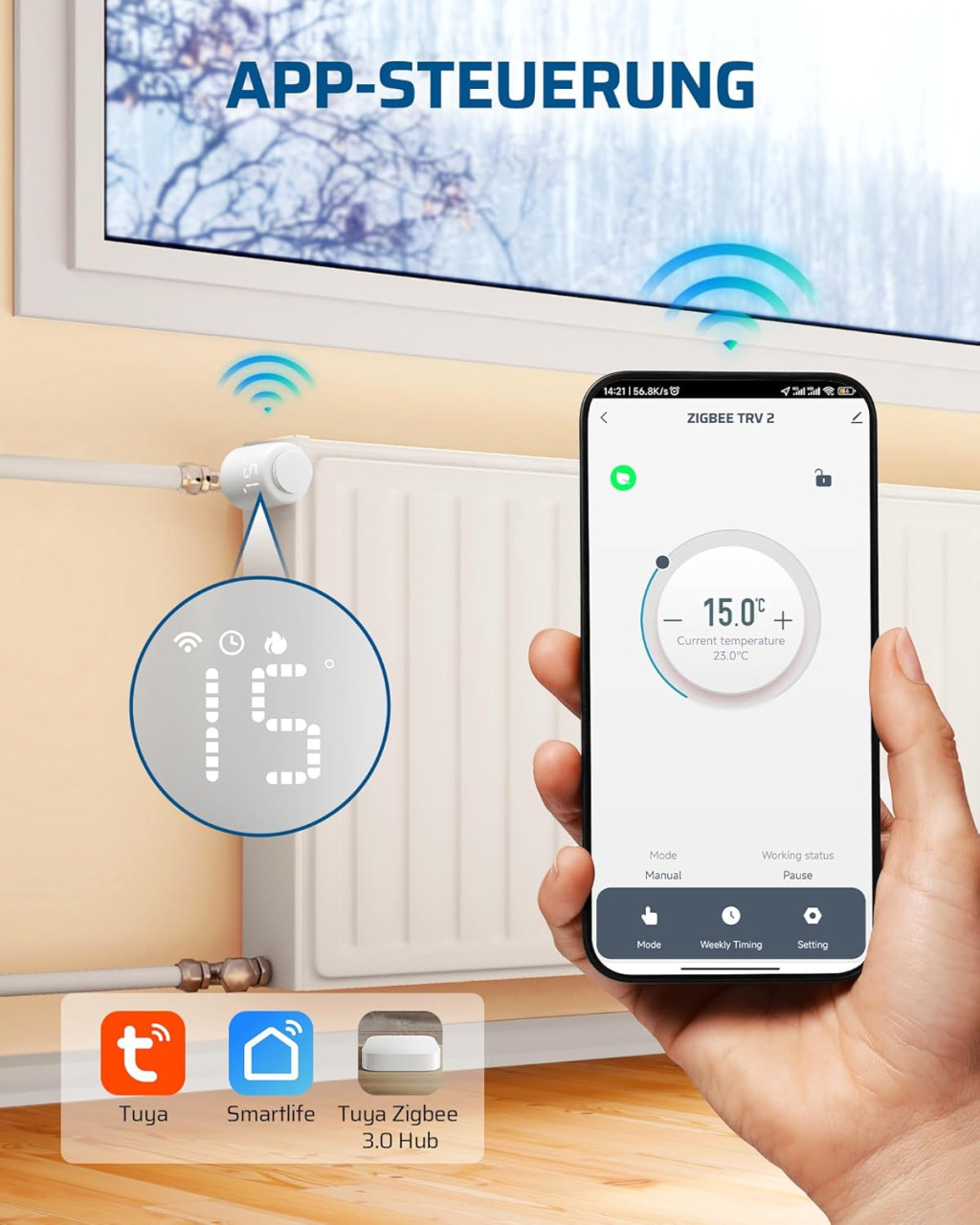 - Model: Termostat inteligent Zigbee pentru calorifer