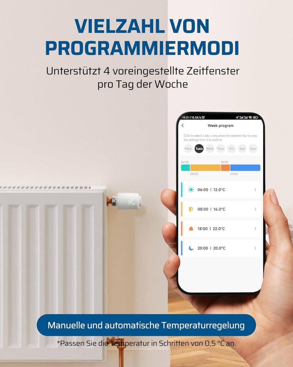 Acest termostat inteligent este o soluție ideală pentru controlul inteligent al încălzirii în apartamente, case, birouri și alte spații. Este util în special pentru cei care doresc să își reducă consumul de energie sau care doresc să controleze încălzirea de la distanță. Funcțiile programabile permit setarea unui program de încălzire personalizat, care se adaptează automat la rutina zilnică.