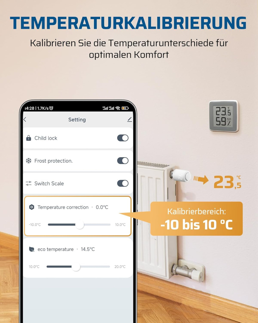 - Calibrarea temperaturii: Opțiune de ajustare individuală pentru o măsurare precisă