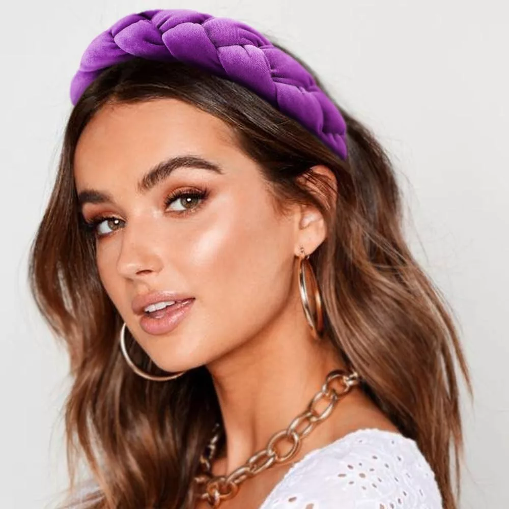 Bandă de păr împletită DRESHOW, pentru femei, din velur elastic, cu design încrucișat