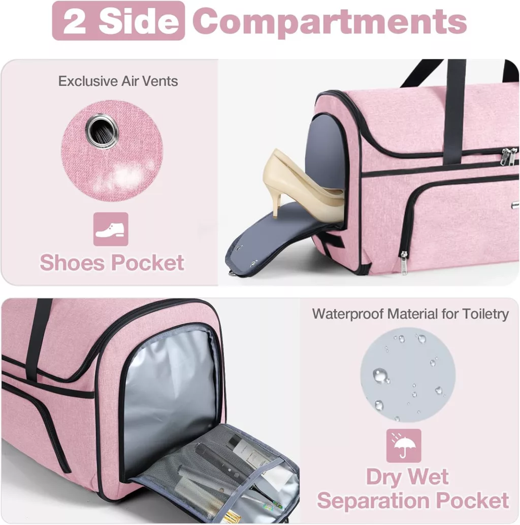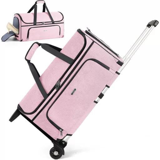 Lekespring Geantă de voiaj cu rotile 47L, cu compartiment pentru pantofi, transformabilă, roz