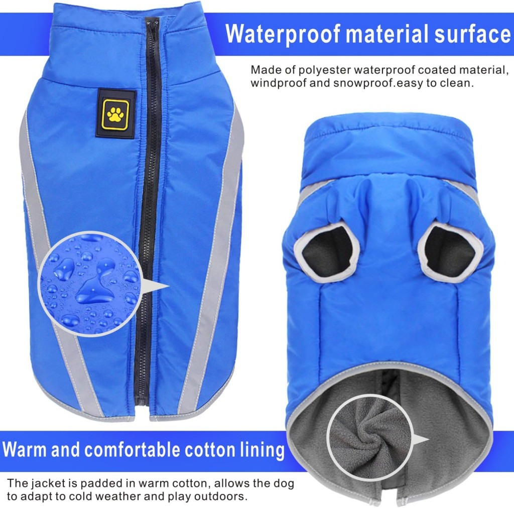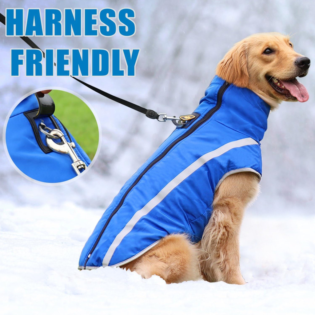 Haină impermeabilă pentru câini Dolahovy - Jachetă călduroasă de iarnă cu orificiu pentru ham, haine de câine rezistente la vânt pentru câini mici, mijlocii și mari, albastru, 4XL