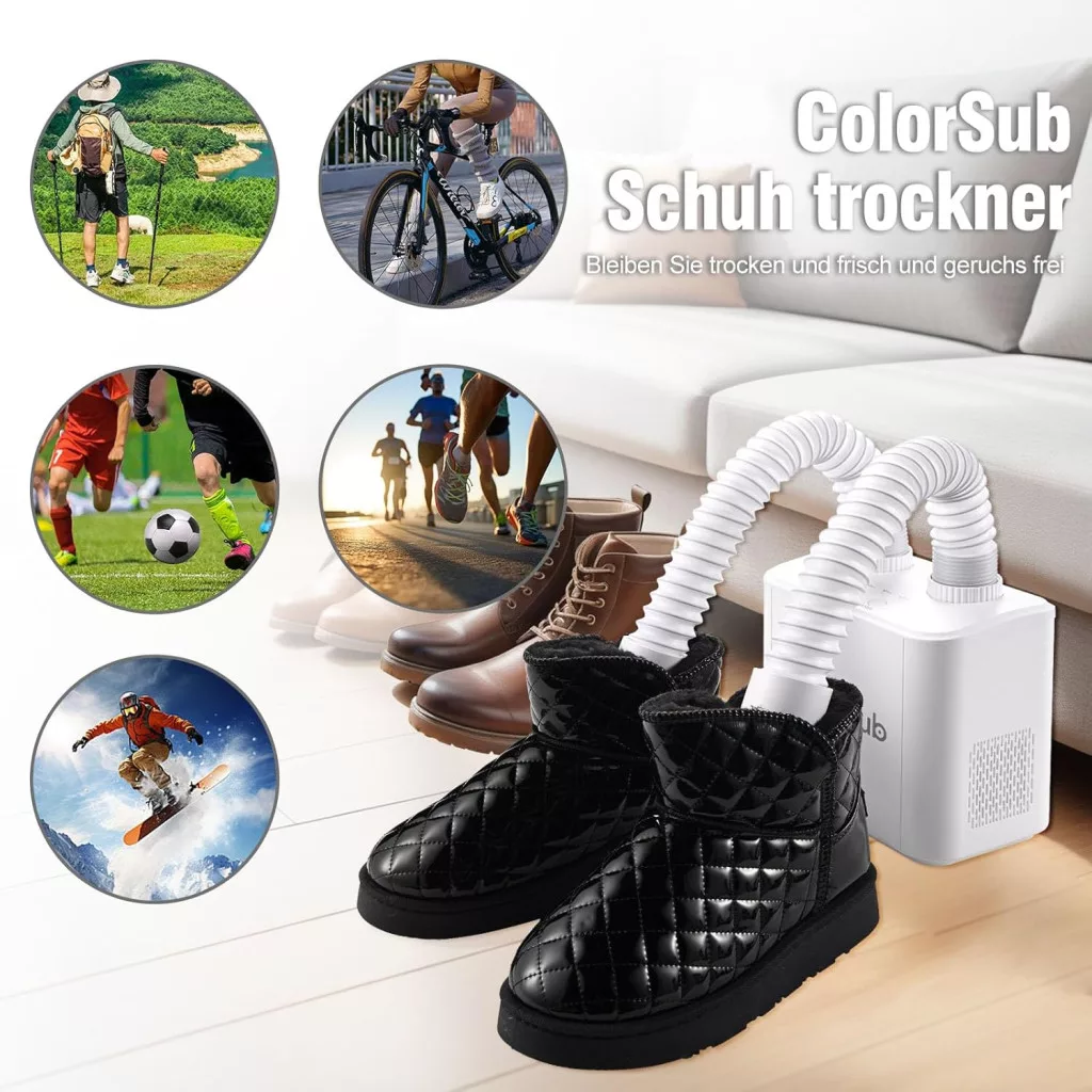Uscătorul electric de încălțăminte ColorSub usucă rapid și eficient pantofii, cizmele și accesoriile: