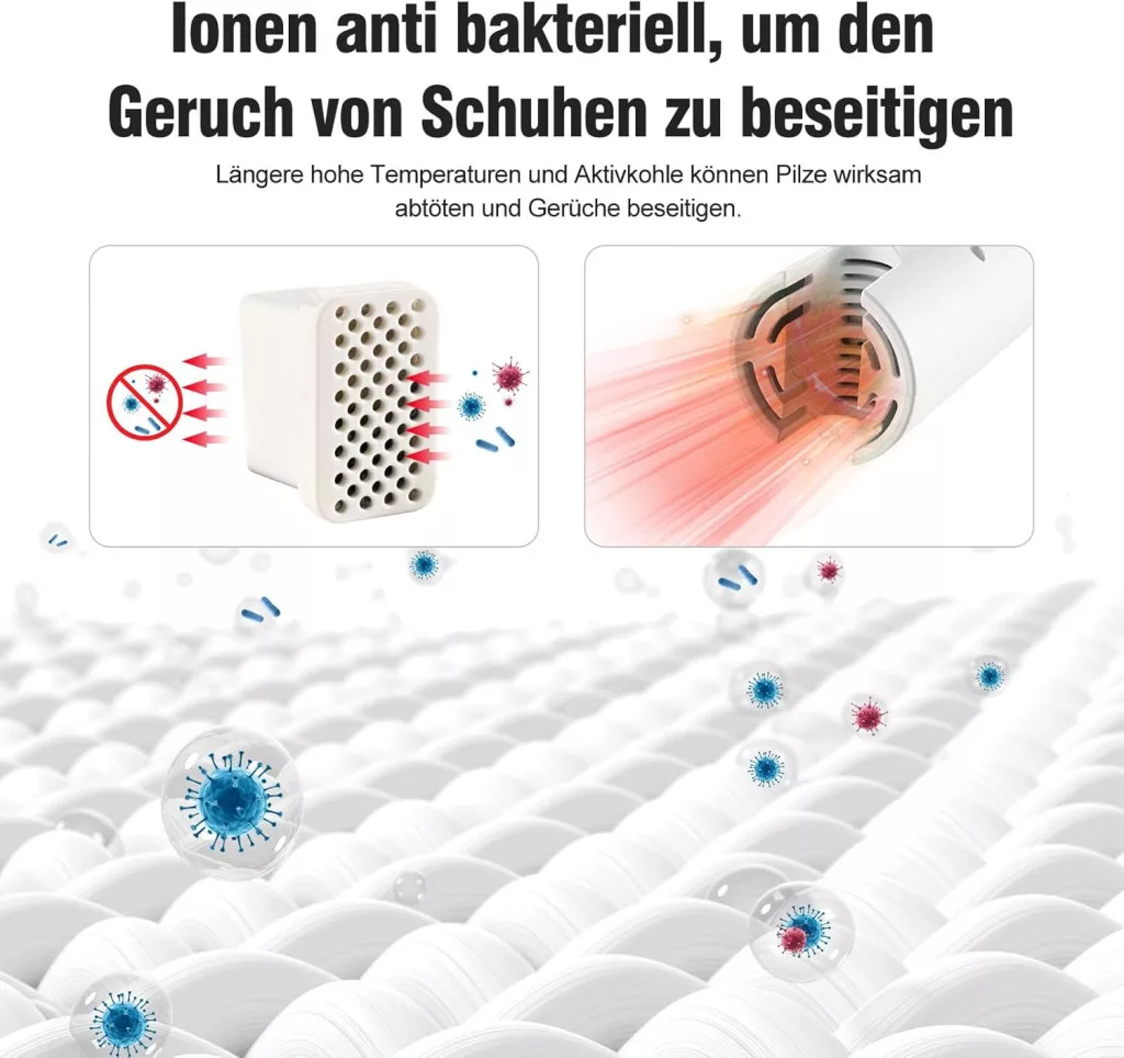 • Temperatură sigură: Temperatura constantă de 55°C nu deteriorează pantofii, nici măcar cele mai sensibile materiale