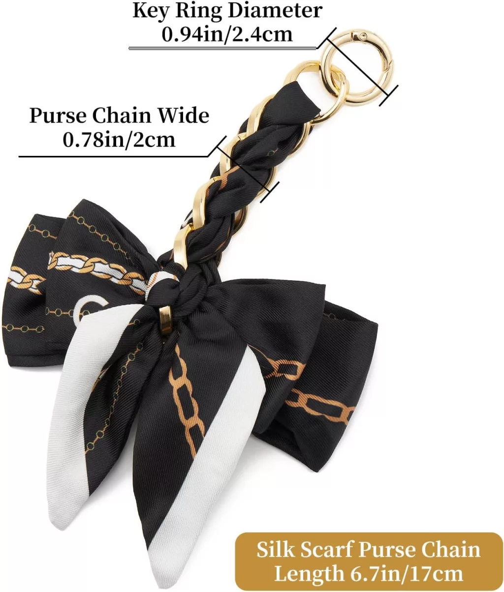 Caracteristica specială a lanțului pentru geantă este că nu este doar funcțional, ci și un element decorativ. Combinația dintre eșarfa de mătase și lanțul metalic oferă un aspect clasic și romantic, în timp ce clemele practice permit instalarea sau îndepărtarea accesoriului în câteva momente.