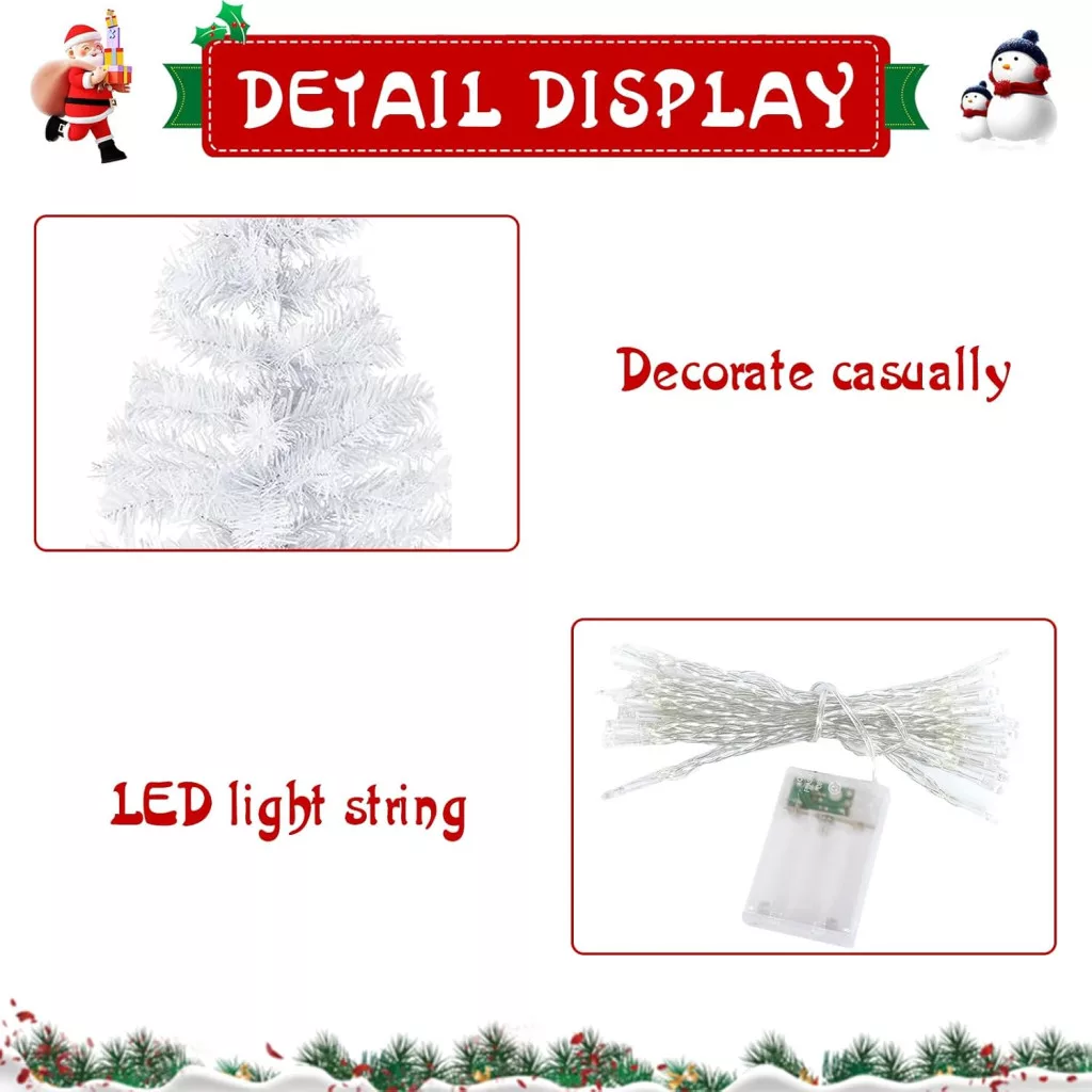 Produsul vine într-un set complet, care include iluminare LED, globuri de Crăciun, o stea și alte ornamente. Aceasta este soluția ideală pentru cei care doresc magia Crăciunului într-o formă compactă și ușor de gestionat.