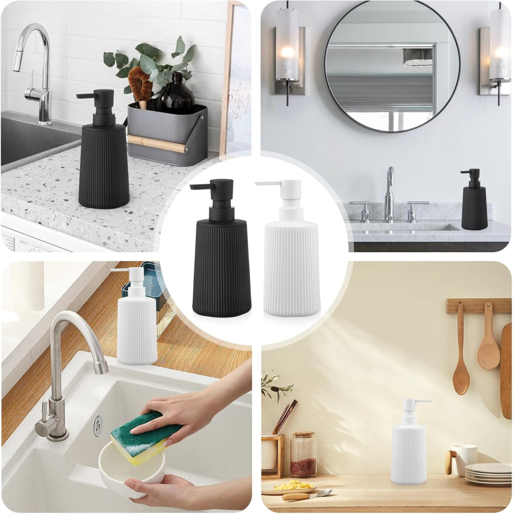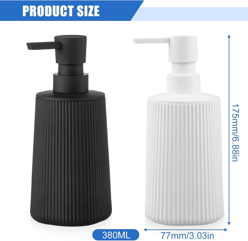 Capacitatea de 380 ml este ideală pentru utilizarea zilnică, iar umplerea ușoară asigură că produsul necesar este întotdeauna la îndemână. Combinația de culori negru și alb vă permite să utilizați dozatoarele în diferite încăperi sau pur și simplu să alegeți în funcție de preferințele personale.
