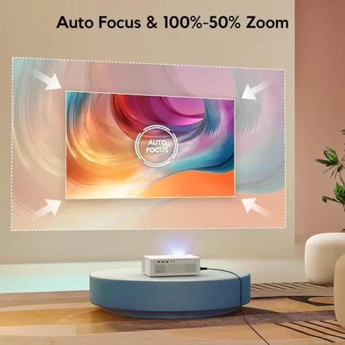 Cu focalizarea automată și funcția de corecție trapezoidală, proiectorul monitorizează și corectează imaginea proiectată în timp real, asigurând o imagine perfectă de fiecare dată, indiferent de unghiul de proiecție. Tehnologia Bluetooth 5.2 bidirecțională vă permite să utilizați proiectorul și ca difuzor sau să îl conectați la dispozitive audio externe pentru o experiență audio perfectă.
