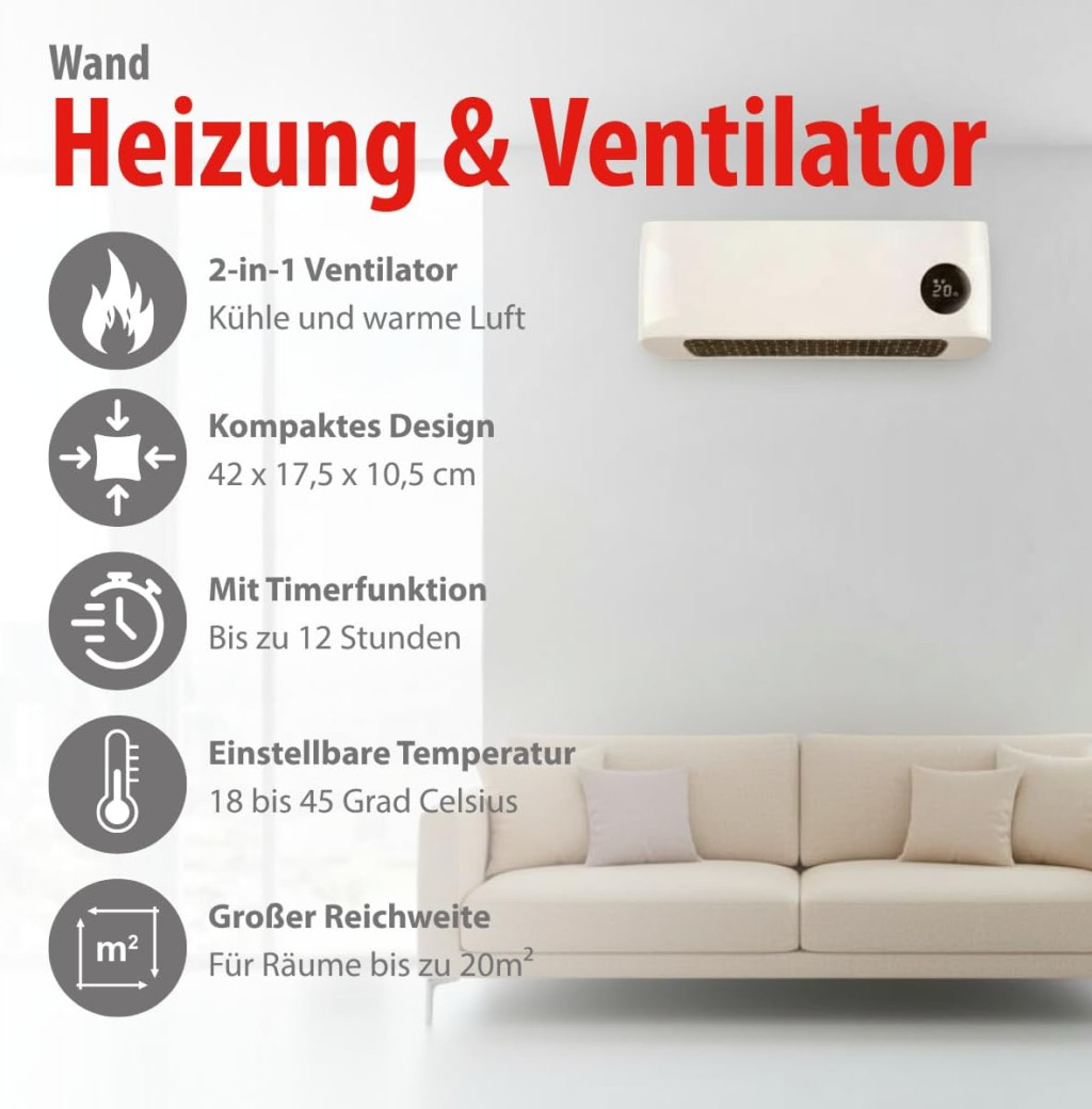 A kompakt méret és a falra szerelhető kialakítás miatt tökéletes választás lakások, házak, irodák és egyéb belső terek számára. Az időzítő funkció lehetővé teszi, hogy a fűtés csak akkor működjön, amikor szükséges, így további energiamegtakarítást biztosít.