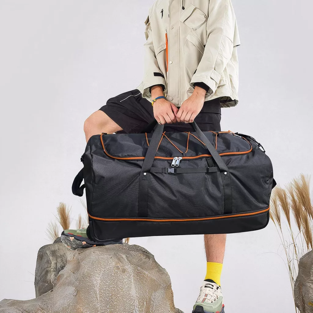 Geantă de călătorie YHYEH de 32 inch cu roți, extensibilă 110-140L, valiză moale cu rotile, negru/portocaliu