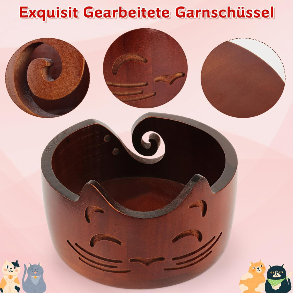 Coopay Macska Alakú Fonalcsipke - Fa Fonaltartó Tál Kötéshez és Horgoláshoz