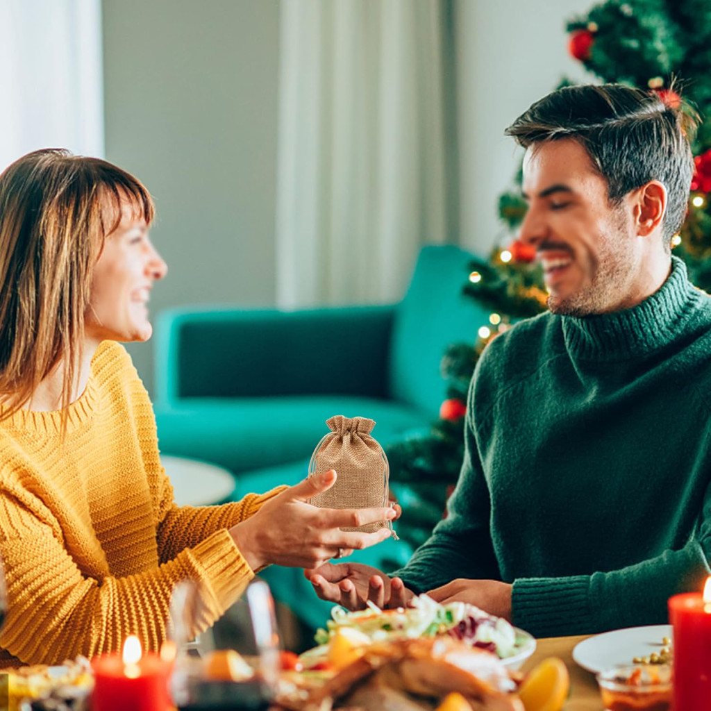 ZEIYKUJQ 30 buc. Săculeți cadou din iută 10x14 cm cu șnur, pungi reutilizabile pentru nuntă, suport bijuterii