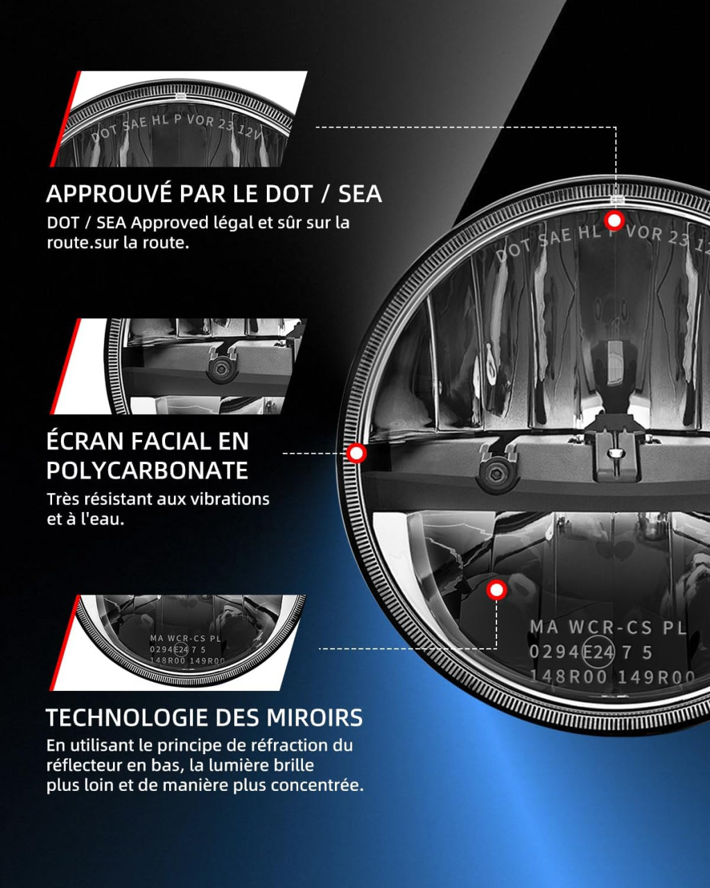 Important: Înainte de a cumpăra, verificați întotdeauna dacă diametrul farului motocicletei dumneavoastră este de 7 inch (aproximativ 17,8 cm). Dimensiunea corectă asigură o potrivire și o funcționare perfectă.