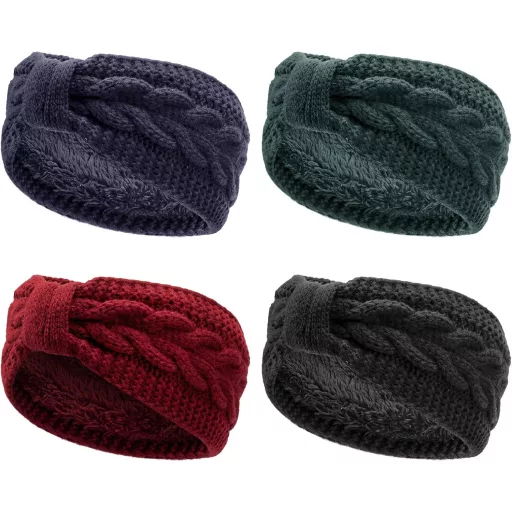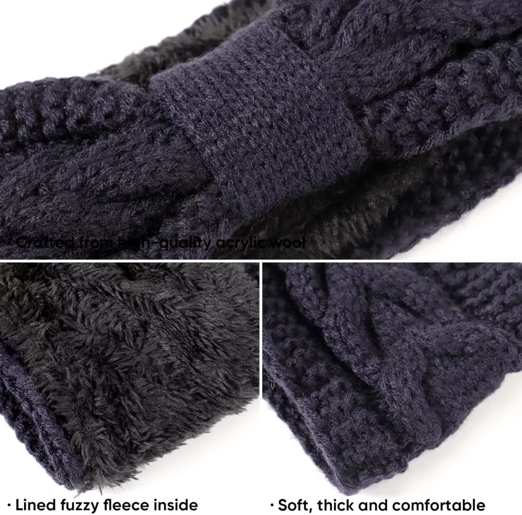 Bandă de păr DRESHOW pentru femei, tricotată, călduroasă, de iarnă, protecție pentru urechi, căptușită cu fleece gros.
