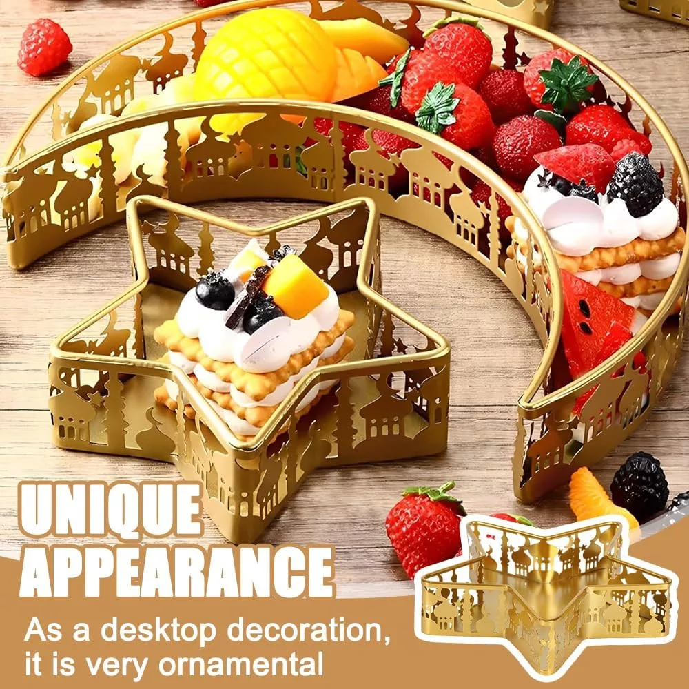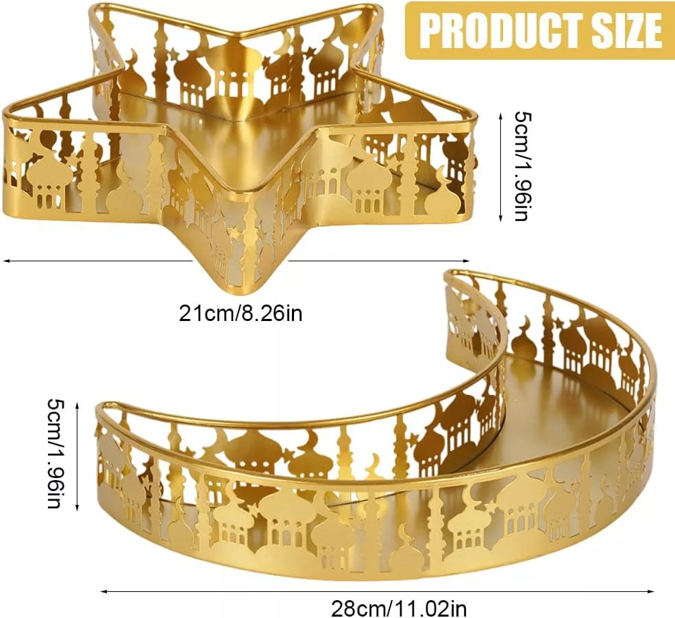 NAVESO Eid Mubarak Hold Csillag Tálca, Ramadan Arany Fém Tányér Szett, Iszlám Ünnepi Asztal Dekoráció