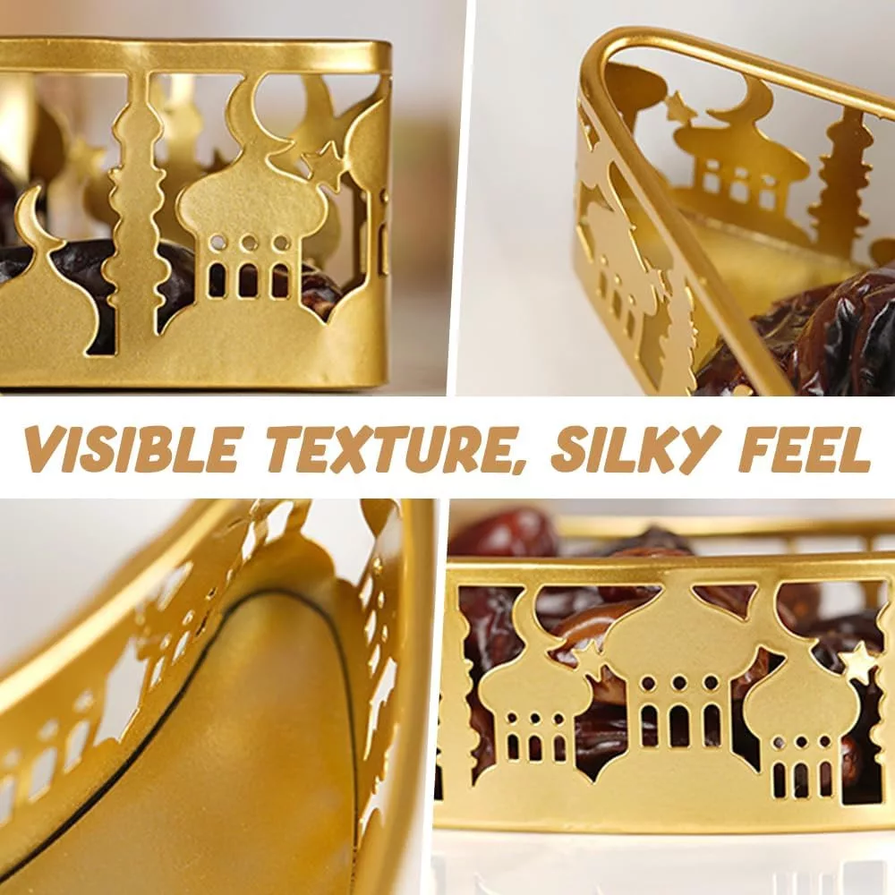A NAVESO Eid Mubarak tálca készlet nem csupán egy praktikus tárolási megoldás, hanem egy igazi dekoratív műalkotás, amely az iszlám kultúra és tradíciók tiszteletét fejezi ki. Az elegáns hold és csillag motívumok, valamint a finom kastély mintázatok minden nézőt lenyűgöznek. A prémium minőségű vas anyag és a rozsdamentes arany bevonat garantálja, hogy ez a termék évekig megőrzi szépségét és funkcionalitását. Akár Ramadan ünnepek alkalmával, akár egy különleges eseményen szeretné az asztalát díszíteni, ez a tálca készlet tökéletes választás. Az ajándékozás szempontjából is kiváló opció, amely biztosan örömöt okoz a családtagoknak és barátoknak. Invesztáljon egy olyan termékbe, amely szépséget, funkcionalitást és kulturális értéket egyesít.