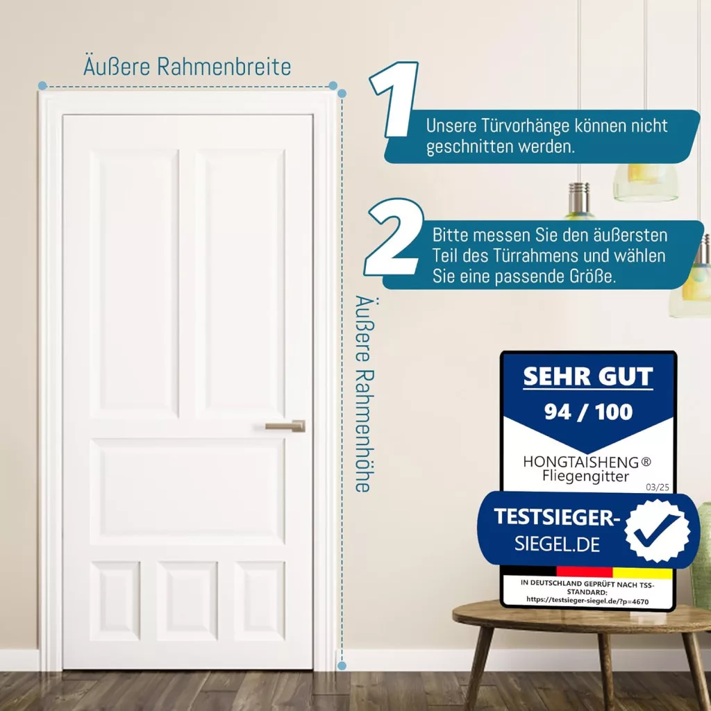Notă importantă: Cortina anti-insecte nu poate fi tăiată la dimensiunea potrivită. Vă rugăm să măsurați cadrul ușii înainte de a cumpăra și să alegeți o cortină care este mai mare decât dimensiunea ușii și cât mai apropiată de aceasta.