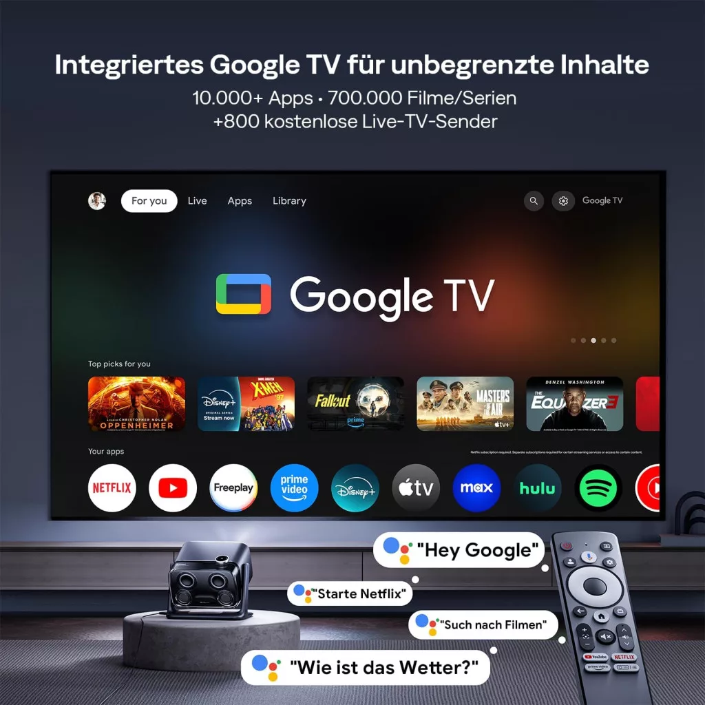Aurzen Boom Mini, proiector inteligent 4-în-1 cu Google TV Prezentare generală a produsului