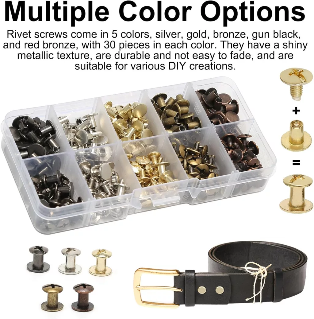 Set de 150 de Șuruburi Chicago pentru Prelucrarea Pielii și Proiecte DIY - În 5 Culori Prezentarea Generală a Produsului