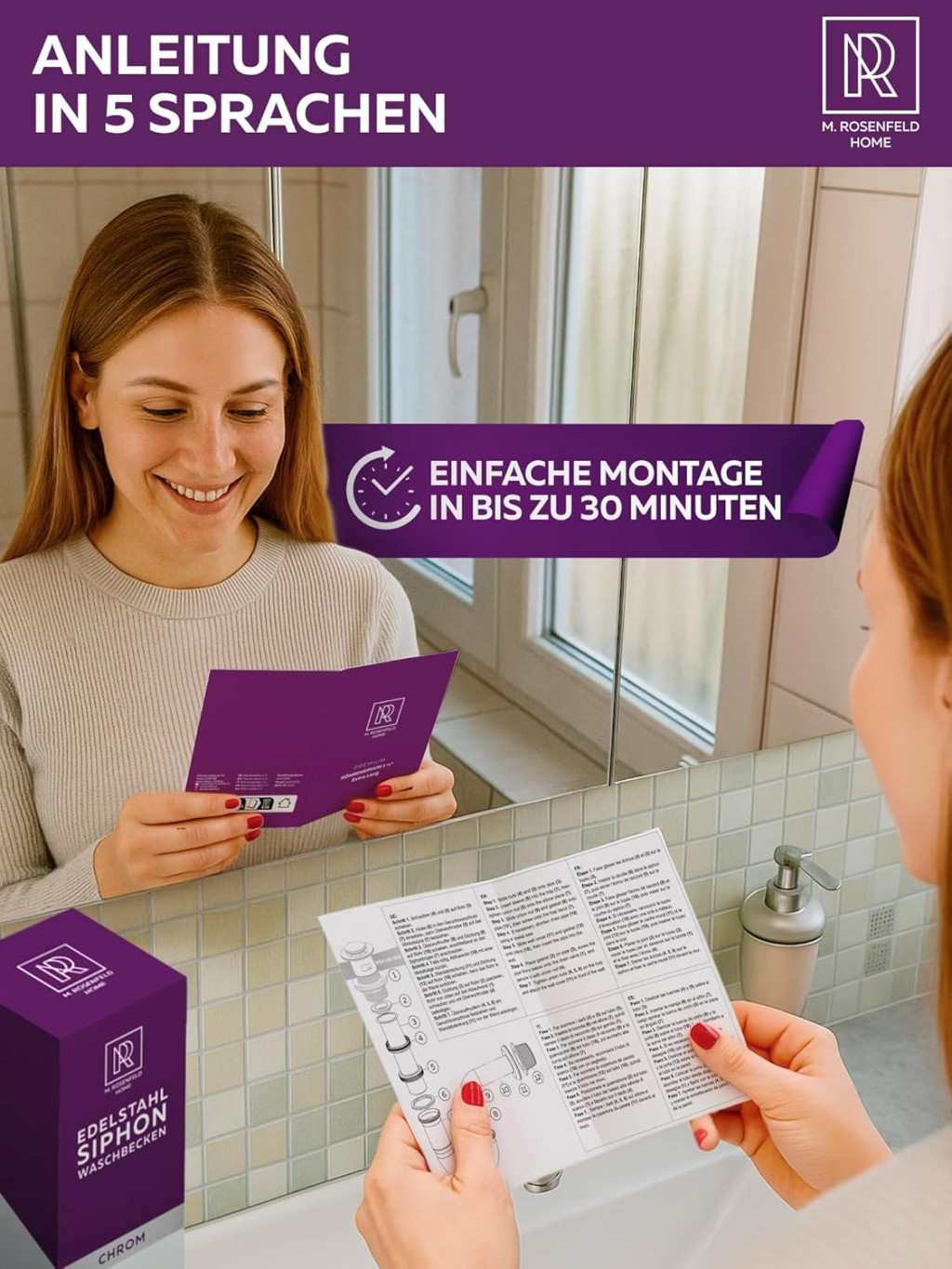 Soluția perfectă pentru renovarea unei băi moderne este sifonul de designer M. ROSENFELD HOME. Acest sifon de mărimea L este special conceput pentru cei care au chiuvete cu o înălțime de instalare mai mare. Tubul de imersie reglabil flexibil (130-230 mm) și tubul de perete lung de 330 mm asigură o potrivire exactă pentru baia dumneavoastră. Produsul din oțel inoxidabil nu este doar funcțional, ci adaugă și valoare estetică băii.