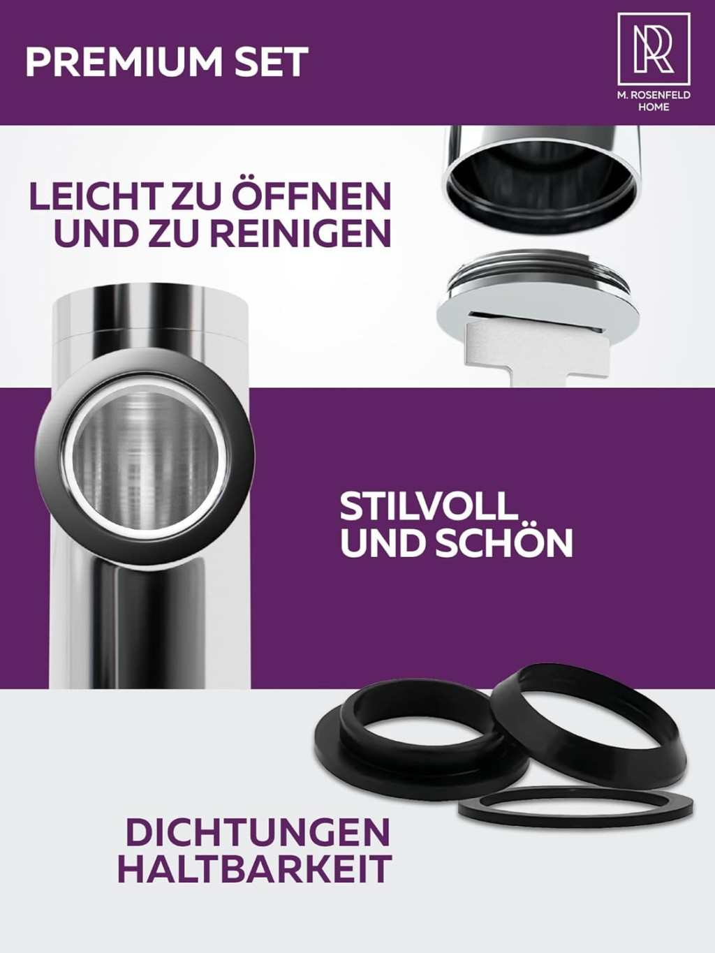 Sifonul de designer M. ROSENFELD HOME este combinația perfectă de calitate, design și funcționalitate. Materialul din oțel inoxidabil garantează o durată lungă de viață și o funcționare fără coroziune. Suprafața elegantă cromată se potrivește cu orice stil modern de baie.